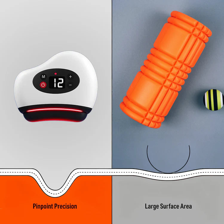 ThermaScrape™ is an advanced fascia-release and recovery tool that combines heat, red-light therapy, vibration, and precision scraping to relieve pain, loosen tight fascia, improve mobility, and promote faster healing.